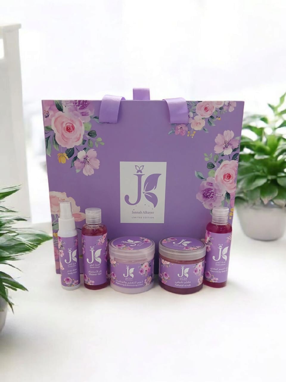مجموعة الإستحمام الطبيعية برائحة فواحة ومصنوعه من الزيوت والزبدات الطبيعية الآمنه على الشعر والبشره